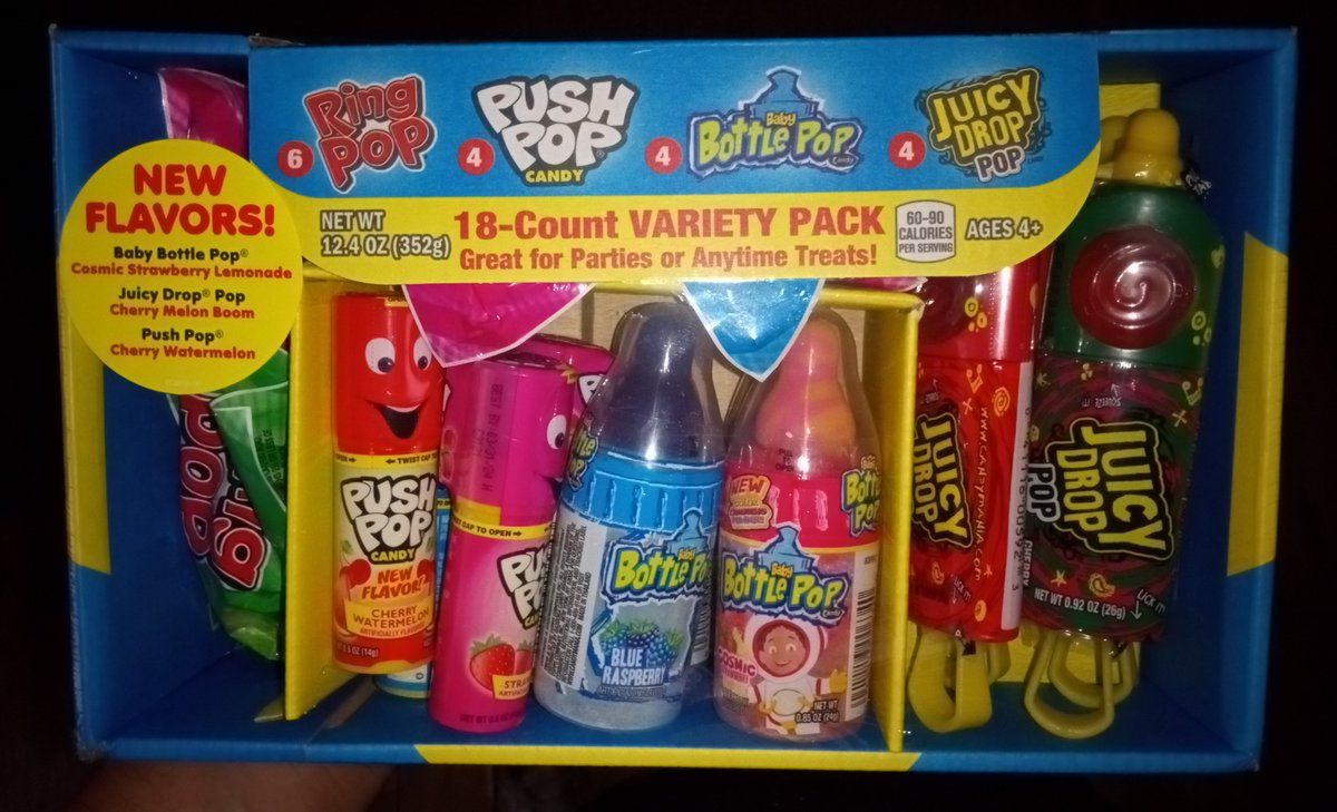Strawberry Watermelon Blue. Baby Bottle Pop Sup Party Pack 10 Pc. Our intense powder and sweet candy pop create maximum levels of silliness.
